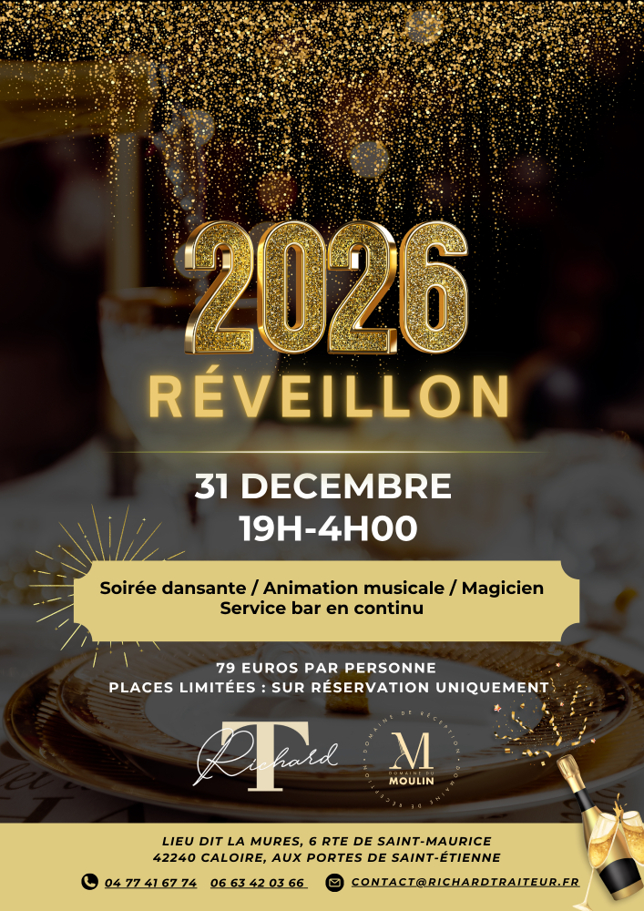 Le Domaine du Moulin à Caloire, aux portes de Saint-Étienne, vous accueille le mercredi 31 décembre, de 19h à 4h du matin, pour une soirée inoubliable !